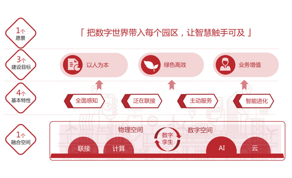 • 之江實驗室智慧園區以“園區+互聯網”為理念,建立感知層、網絡層、平臺層、應用層的架構體系,融入大數據和云計算,構建成為數字化、可視化的超腦平臺。智慧園區函蓋辦公、環境、生活等方方面面,所有在園區內和即